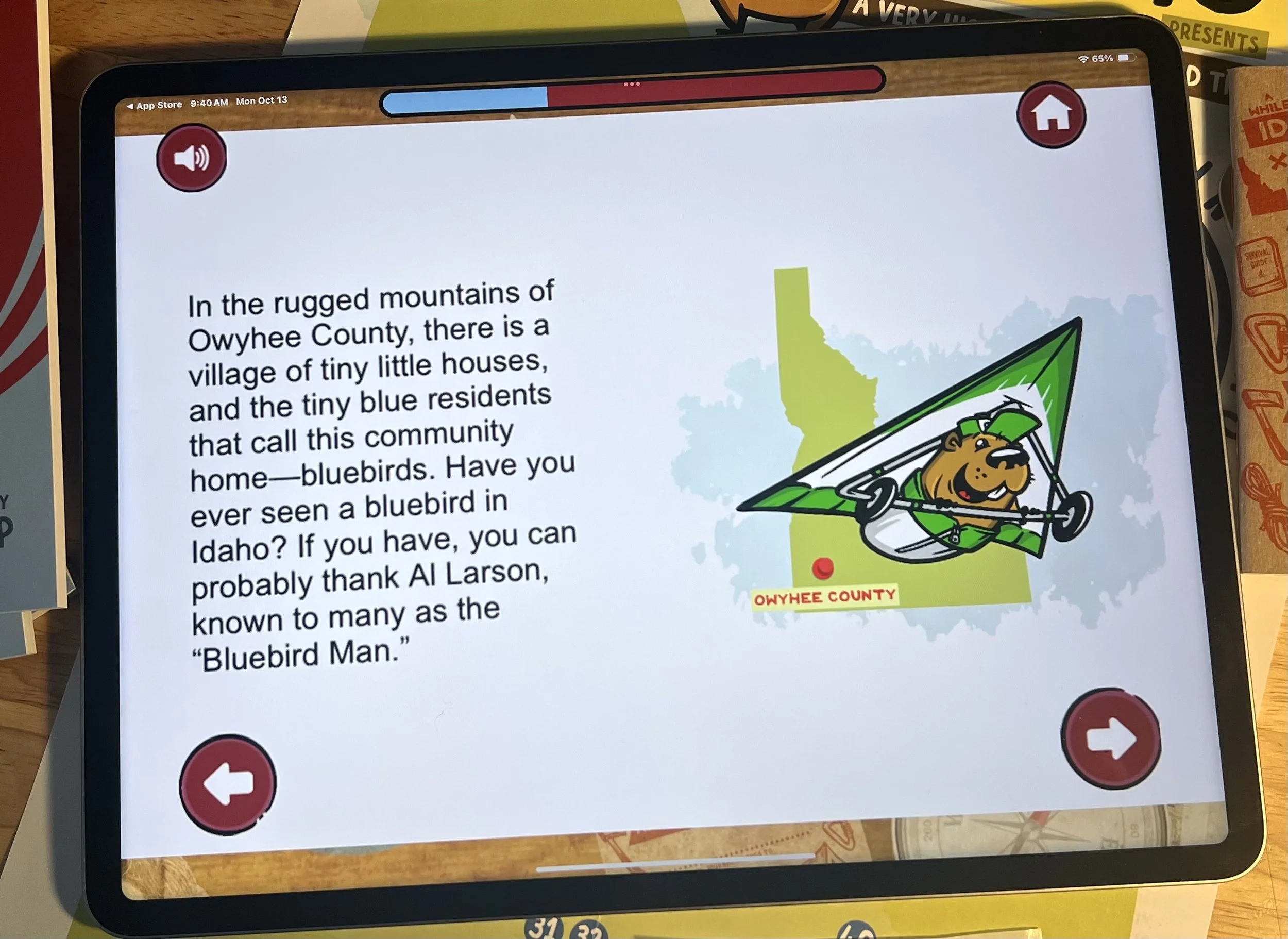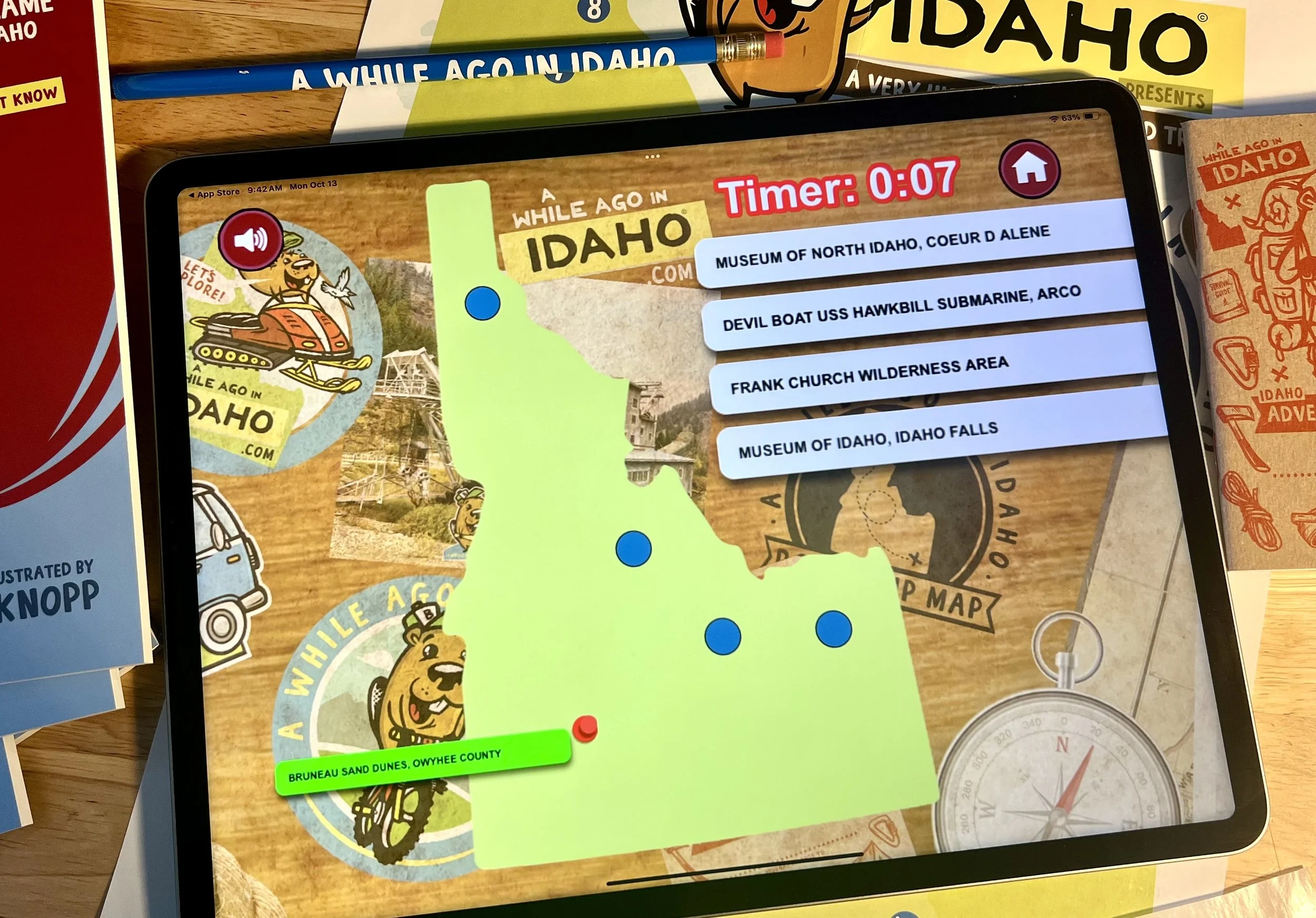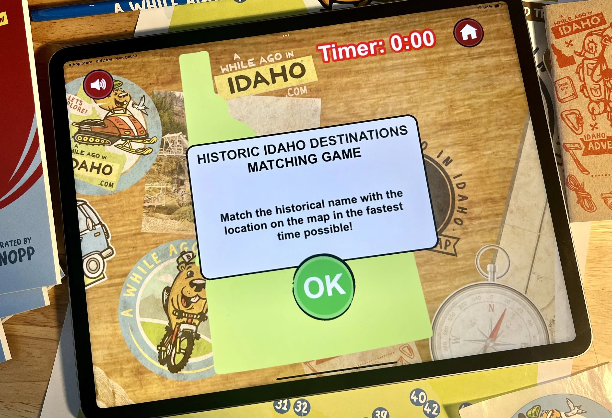 In this digital version of the "A While Ago in Idaho" Special Edition Book, young readers can turn the pages and read along with their lovable narrator and tour guide, Belmont Beaver as he leads the way through the diverse landscapes and rich history of the great state of Idaho. The app is packed with fun activities like coloring pages and an interactive map that quizzes kids on the locations of Idaho towns, making learning both enjoyable and memorable.